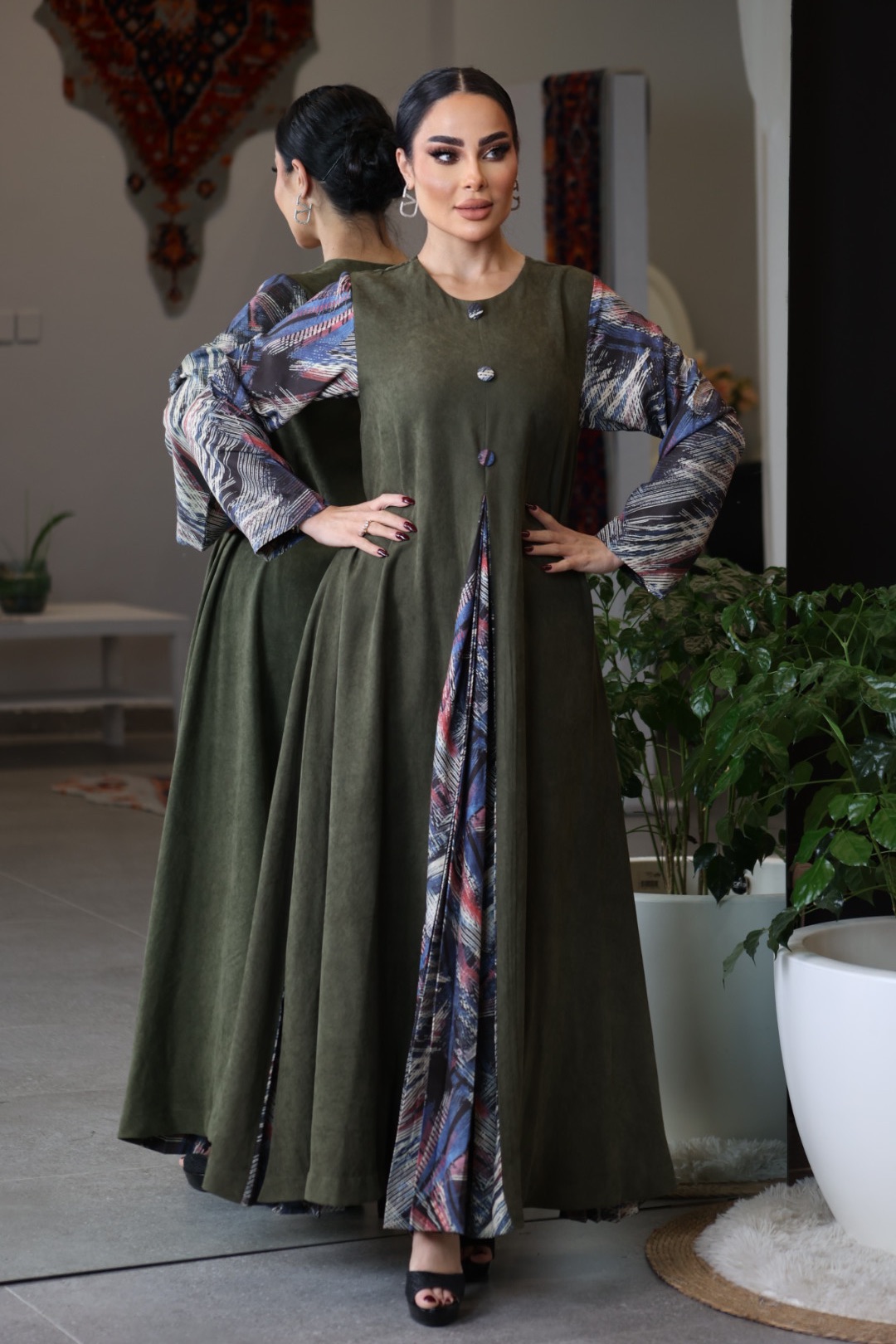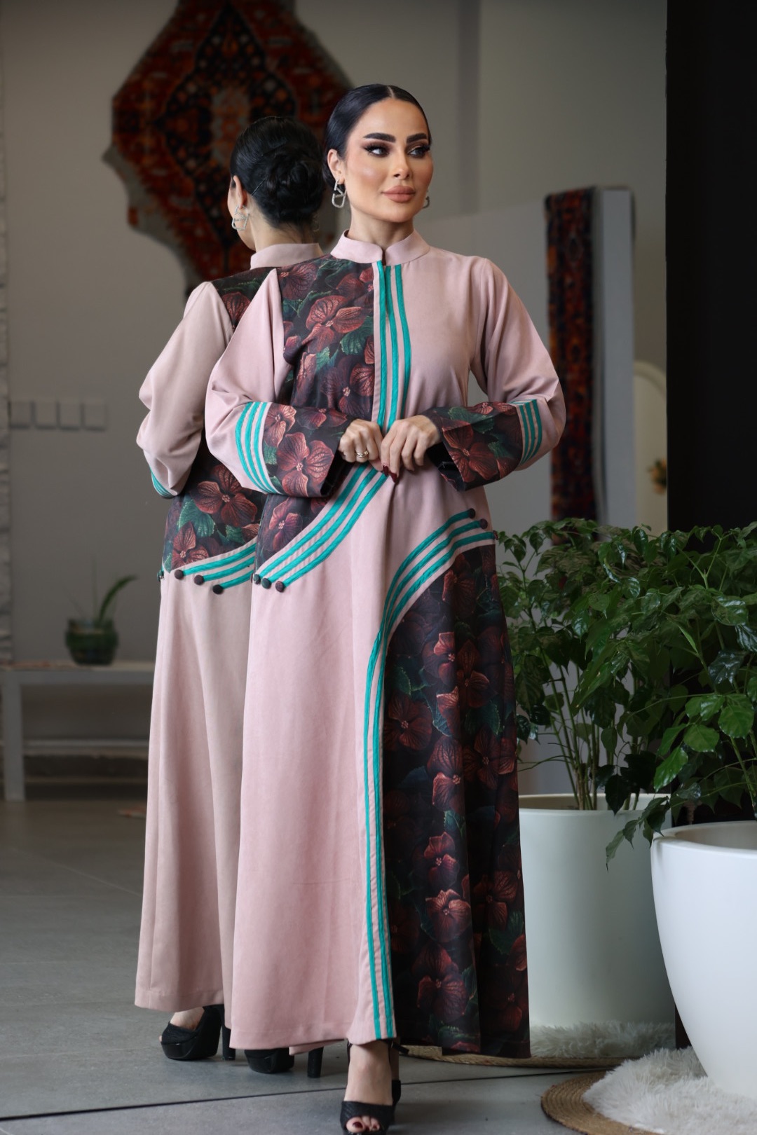 SH 194دراعه خام قماش كريب باربي مع خام قماش مخمل مشجر