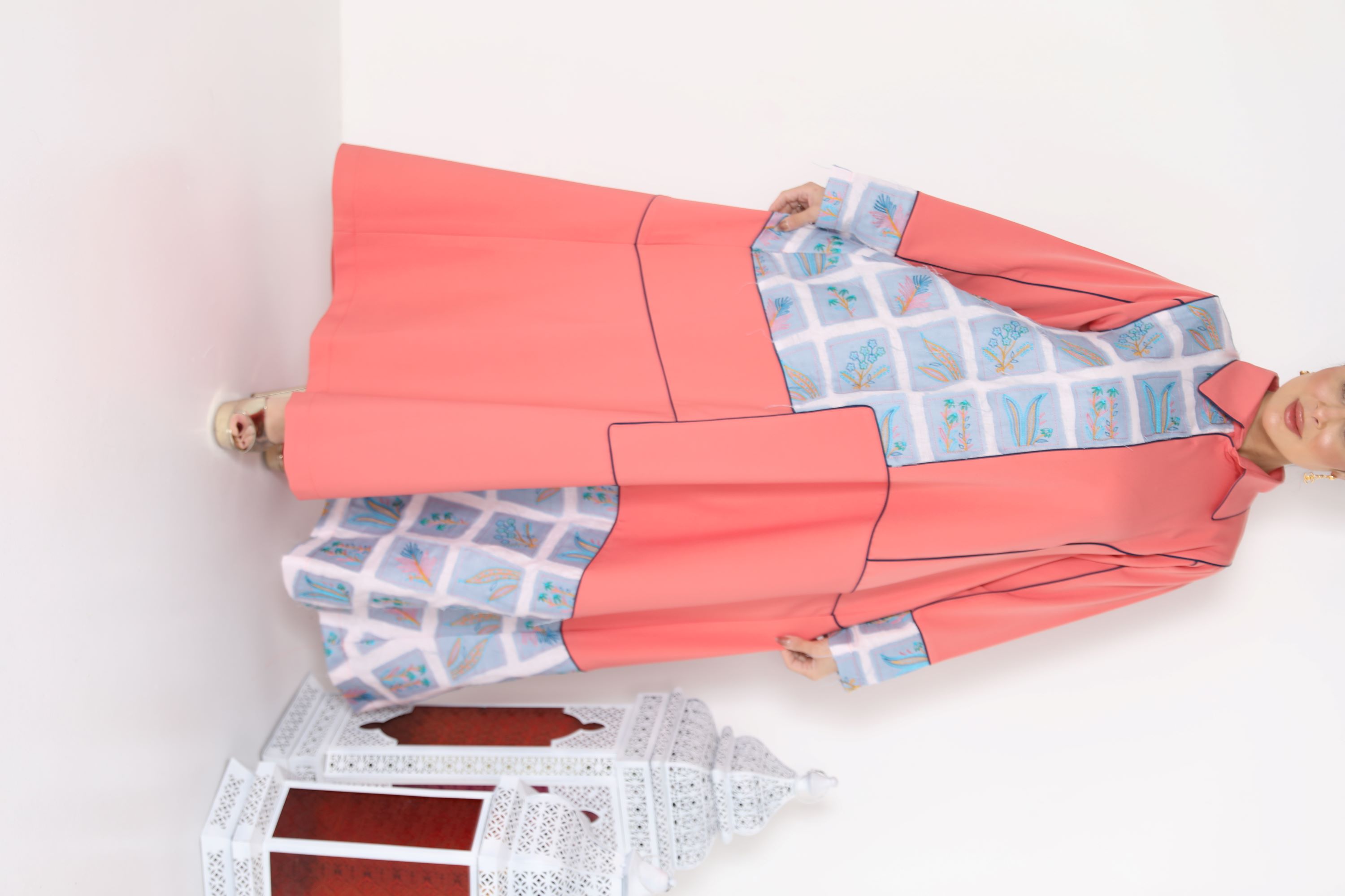 D2 دراعه خام قماش مطرز هندي مع خام قماش لنن