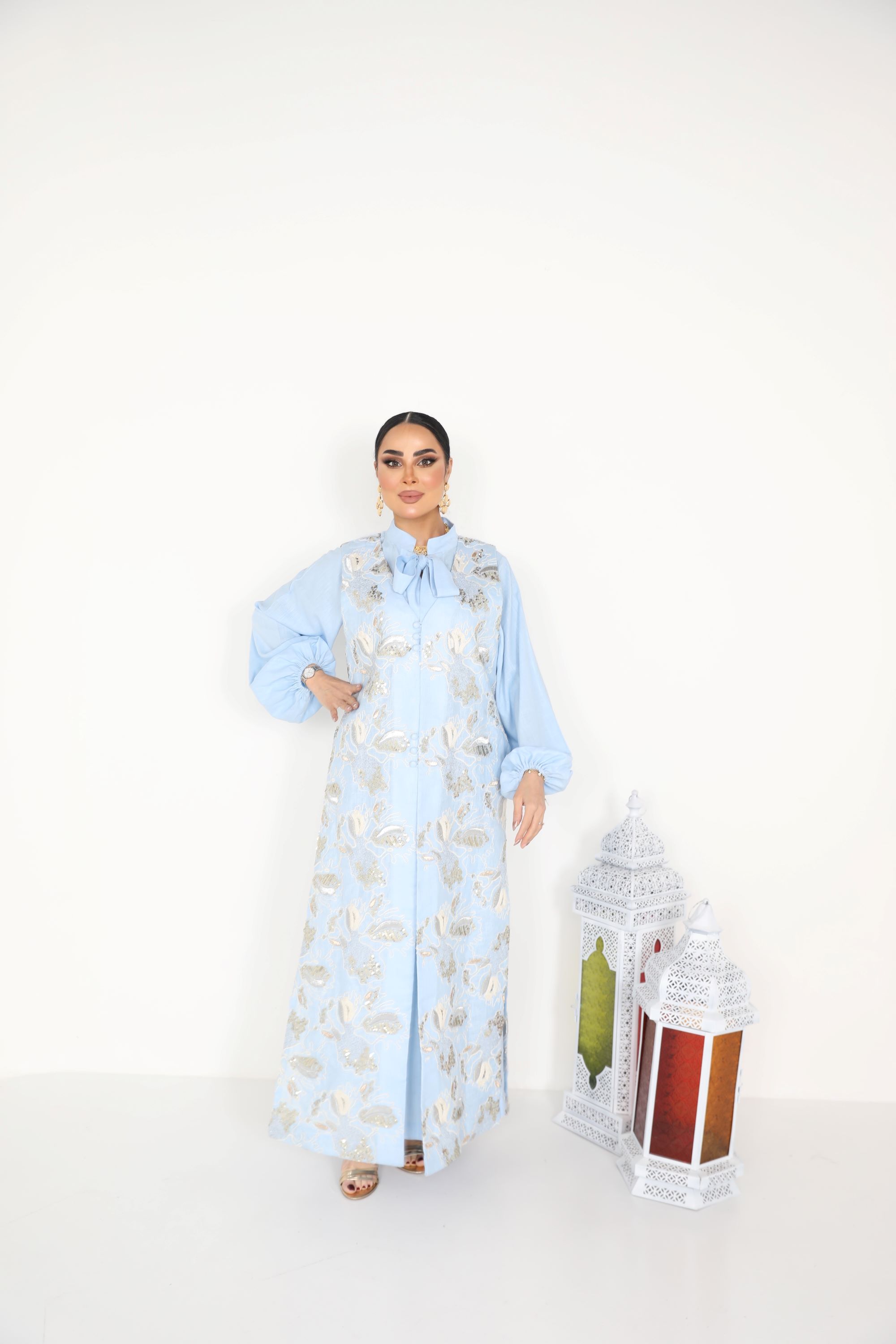 D47 بدله من قماش النن المطرز مع...