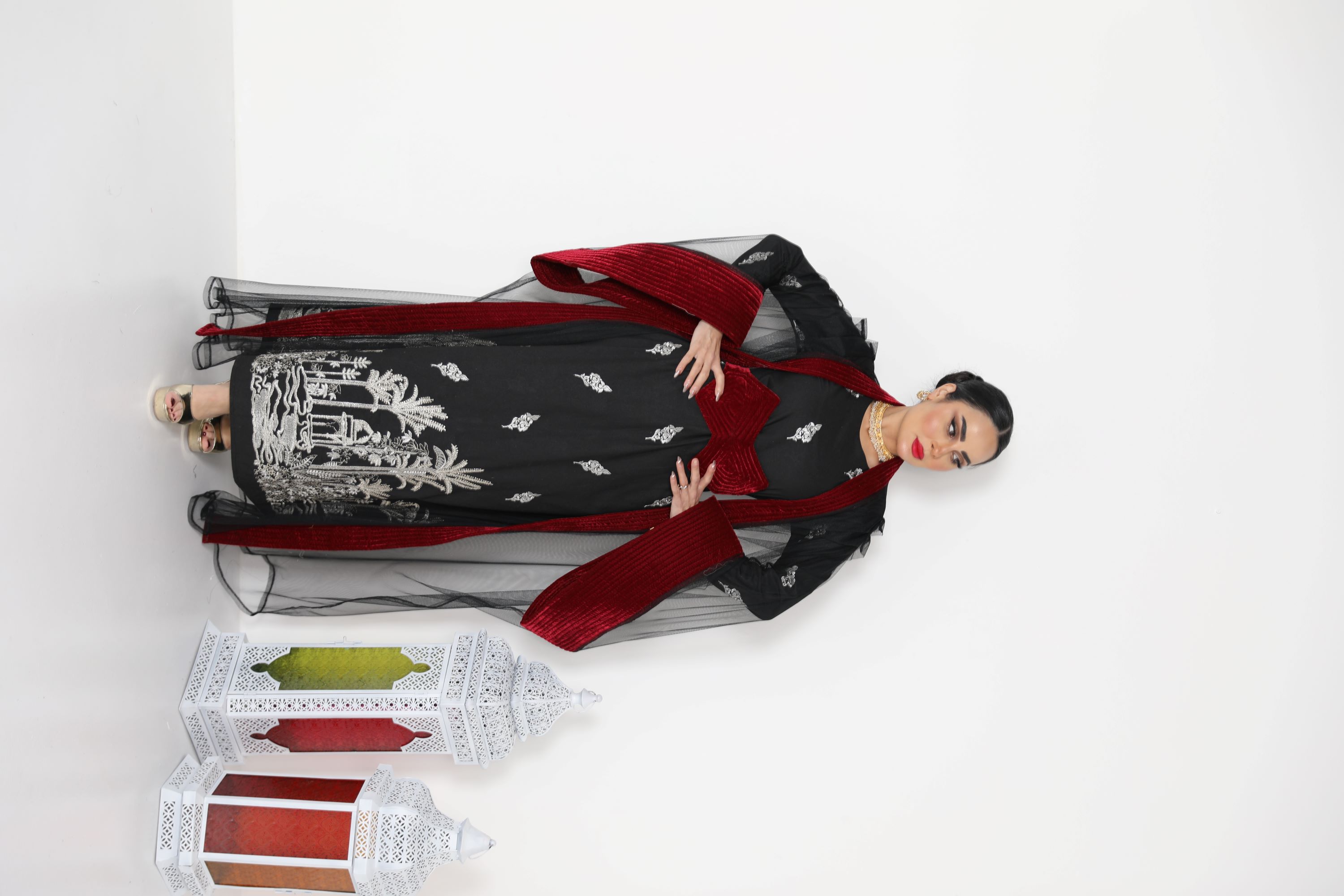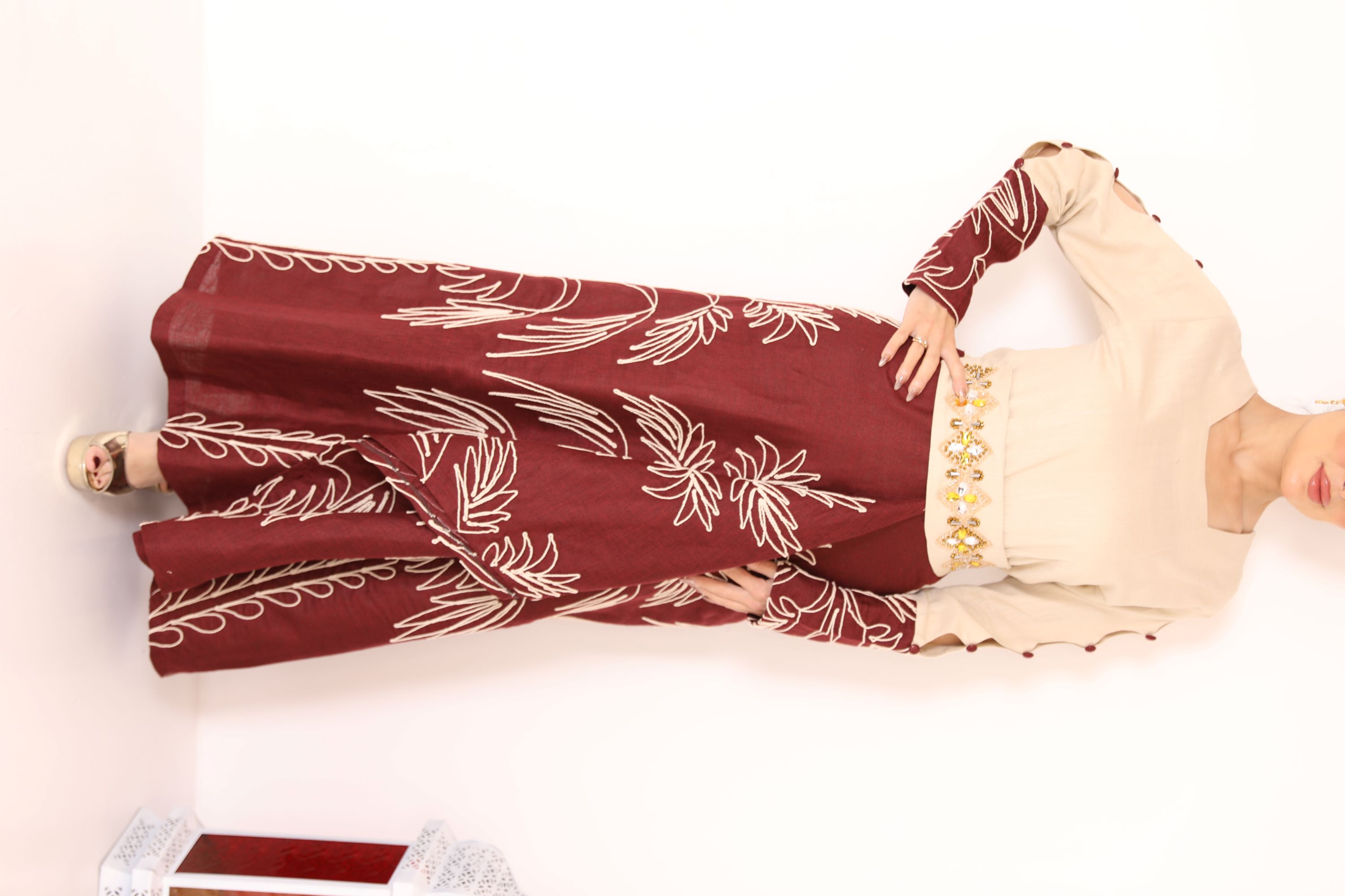 D38 دراعه من قماش النن المطرز مع...
